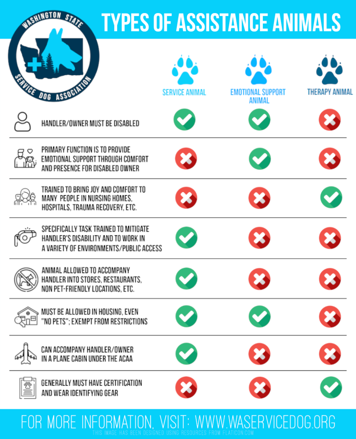 In the U.S., all service dog and ESA: “registries,” “certifications,” “paperwork,” and/or “I.D.’s” obtained online are typically scams, and hold zero legal merit for housing, public access, or air travel purposes. The Department of Justice (DOJ) does not recognize documentation obtained online as proof that the animal is trained or as proof that there is a disability-related need for the animal. In Washington, and in over 20 other states throughout the country, it is a crime to misrepresent one’s animal as a trained service animal. It is important to follow the laws on service animals and not bring untrained animals into non pet-friendly places; all too often, they can distract trained service animals who may miss an alert their handler relies on to stay safe.